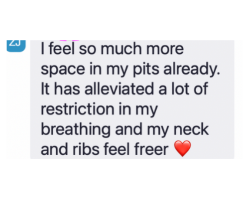 I’ve seen it again and again. Neck, shoulder, and jaw pain ease. So do deeper issues in the psoas, QL, SI joints, piriformis . . . even the feet. And it doesn’t stop there. Freeing the pits can ease carpal tunnel, wrist and elbow strain, and even headaches. The ripple effect is real.